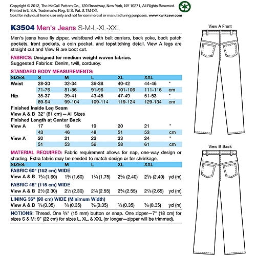 Kwik Sew Pattern Jeans S M L Xl Xxl Walmart Com
